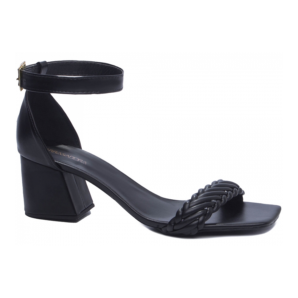 Sandália Feminina Preta Salto Baixo Robusto 4.004A