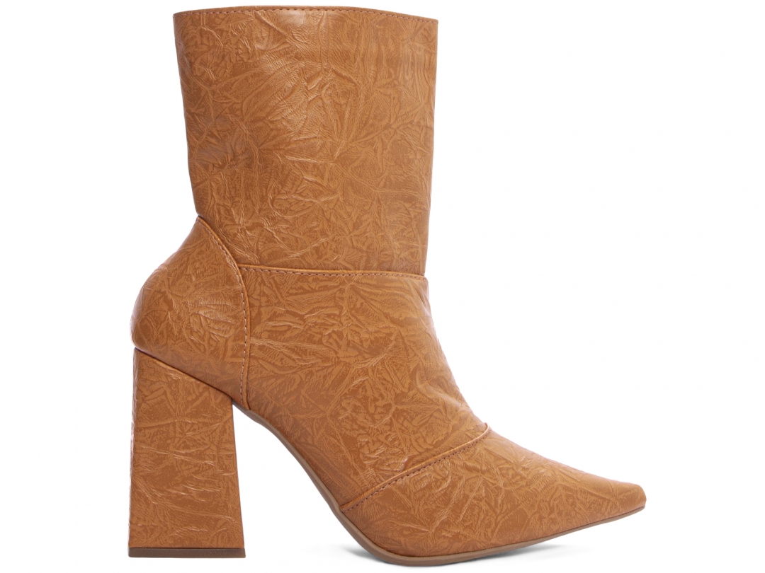• Salto: Grosso com 9 cm de altura, revestido em Napa Vintage Caramelo — imponência elegante com continuidade monocromática.