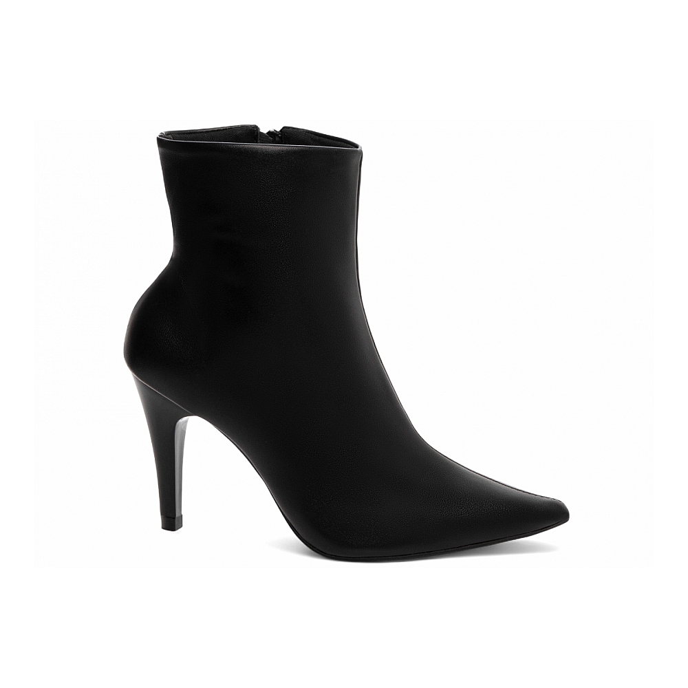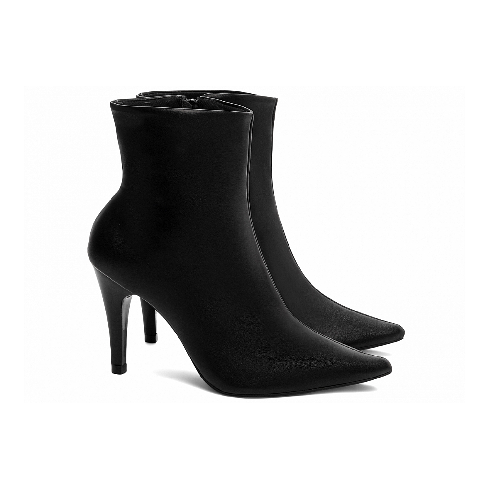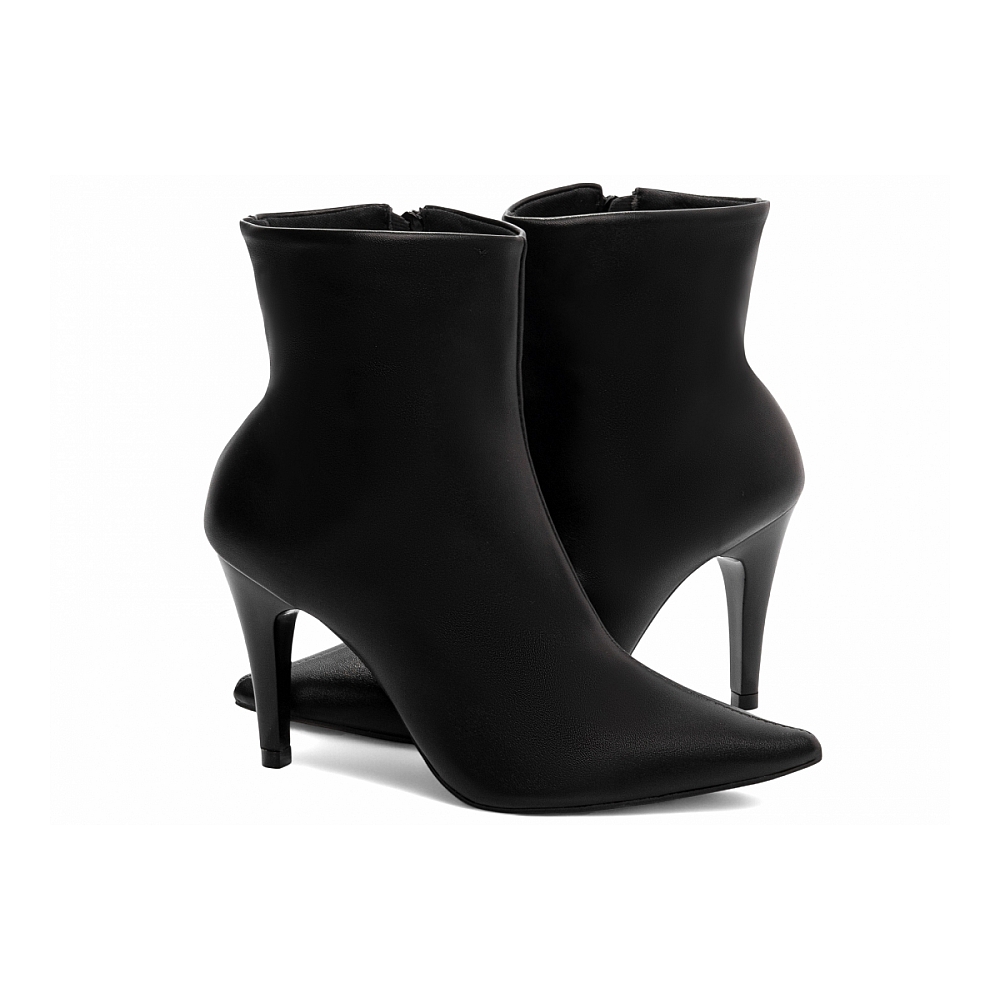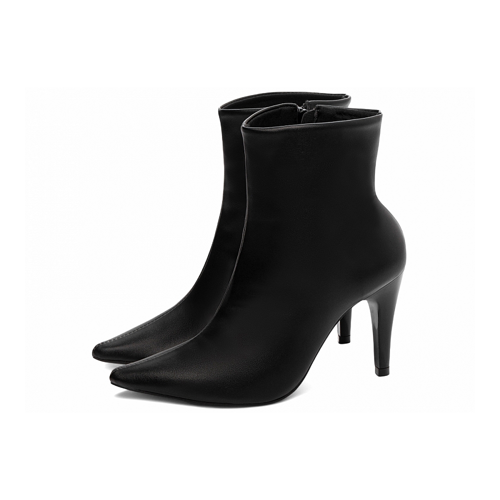 Bota Cano Curto Preta com Bico Fino Características: – Material: Napa preto, com acabamento elegante e toque macio. – Enfeites: Zíper discreto na lateral interna na cor preta, garantindo praticidade e estética clean. – Palmilha: Confeccionada em espuma EVA de 8 mm de espessura, com taloneira em Napa preto para maior conforto e apoio. – Forro: Cacharrel espumado na cor preta, ideal para conforto térmico e ajuste suave aos pés. – Salto: 9 cm de altura, pintado na mesma cor do material para um visual monocromático e sofisticado. – Solado: PVC na cor preta, com design antiderrapante para mais segurança ao caminhar. Cuidados com sua Bota Cano Curto: – Limpe com pano seco ou levemente úmido, evitando o uso de produtos abrasivos. – Hidrate a Napa regularmente com cremes específicos para preservar seu brilho e flexibilidade. – Armazene em local fresco e arejado, longe da umidade e da luz solar direta. – Se molhar, deixe secar naturalmente à sombra, sem usar fontes de calor.