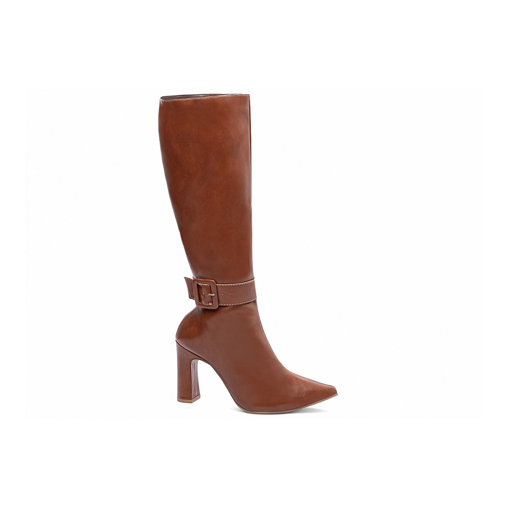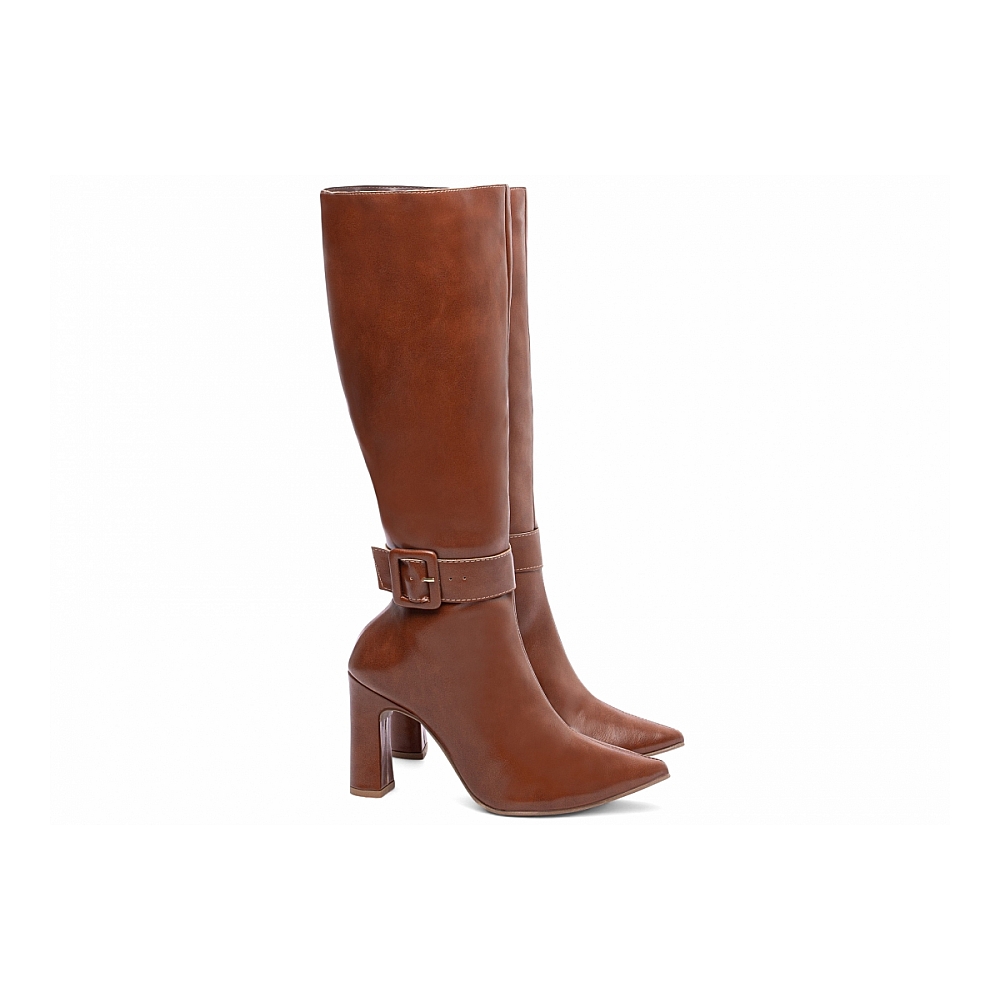 Bota Cano Longo Feminina Caramelo com Bico Fino Características: – Material: Napa caramelo, com acabamento uniforme e toque suave. – Enfeites: Zíper discreto na lateral interna na cor caramelo e tira em Napa caramelo com fivela encapada; a tira é removível, oferecendo duas opções de uso em um único modelo. – Palmilha: Confeccionada em espuma EVA de 8 mm de espessura, com taloneira em Napa preto para maior conforto e apoio. – Forro: Cacharrel espumado na cor marrom, ideal para conforto térmico e ajuste suave aos pés. – Salto: 9 cm de altura, revestido em Napa caramelo para um visual elegante e harmônico. – Solado: TR na cor bege, proporcionando aderência e flexibilidade para o uso diário. Cuidados com sua Bota Cano Longo: – Limpe com pano seco ou levemente úmido, evitando o uso de produtos abrasivos. – Hidrate a Napa regularmente com cremes específicos para preservar seu brilho e flexibilidade. – Armazene em local fresco e arejado, longe da umidade e da luz solar direta. – Se molhar, deixe secar naturalmente à sombra, sem usar fontes de calor.