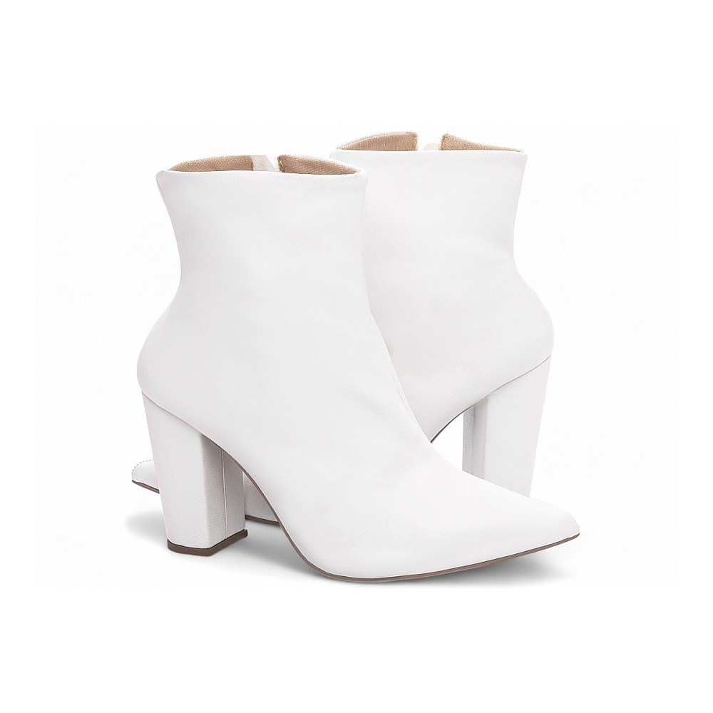 Bota Feminina Branca Cano Curto Salto Alto Características: – Material: Napa Branco. – Enfeite: Zíper na cor branca na lateral interna. – Palmilha: 8 mm de espessura, espuma em EVA e taloneira Napa Preto. – Forro: Cacharrel espumado na cor bege. – Salto: 9 cm de altura, encapado em Napa Branco. – Solado: PVC antiderrapante na cor bege. Cuidados com sua Bota: – Limpe com um pano macio e úmido, evitando produtos abrasivos. – Armazene em local seco e arejado, longe de exposição direta ao sol. – Utilize hidratante específico para napa, seguindo as instruções do fabricante.
