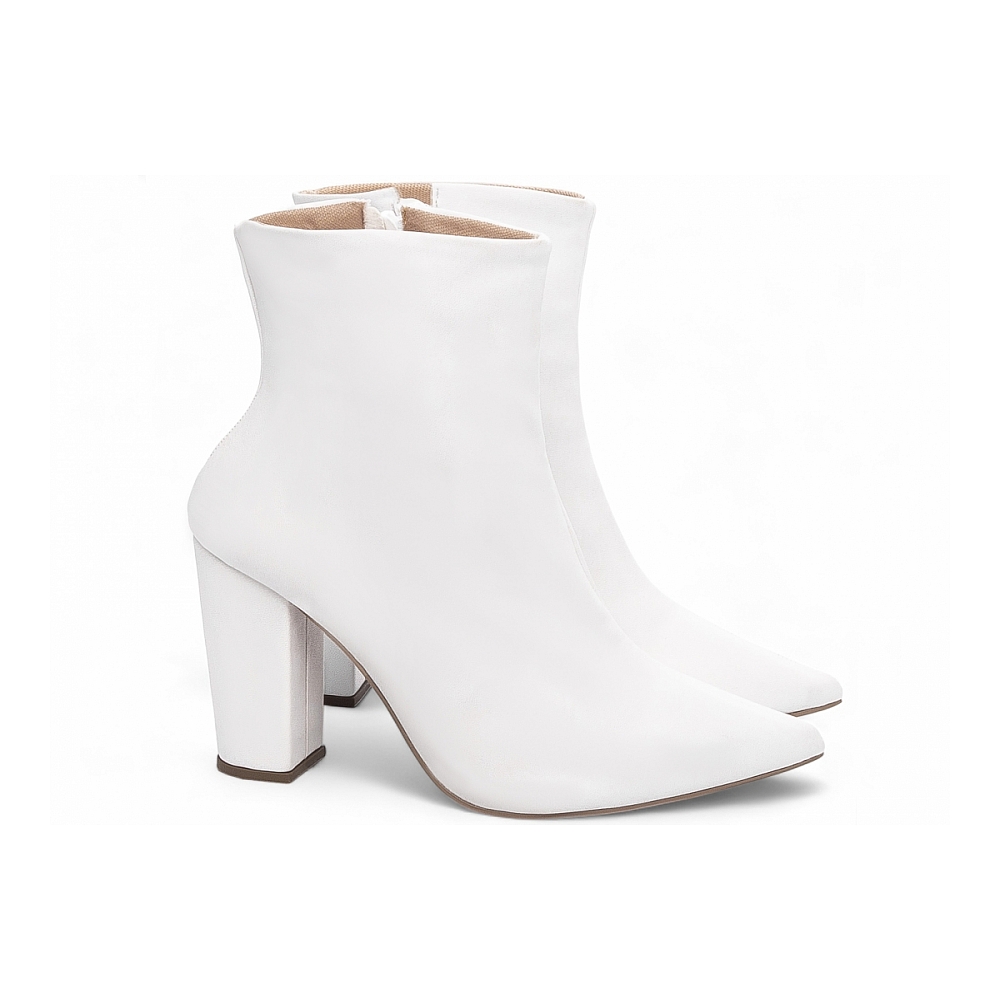 Bota Feminina Branca Cano Curto Salto Alto 65-04B