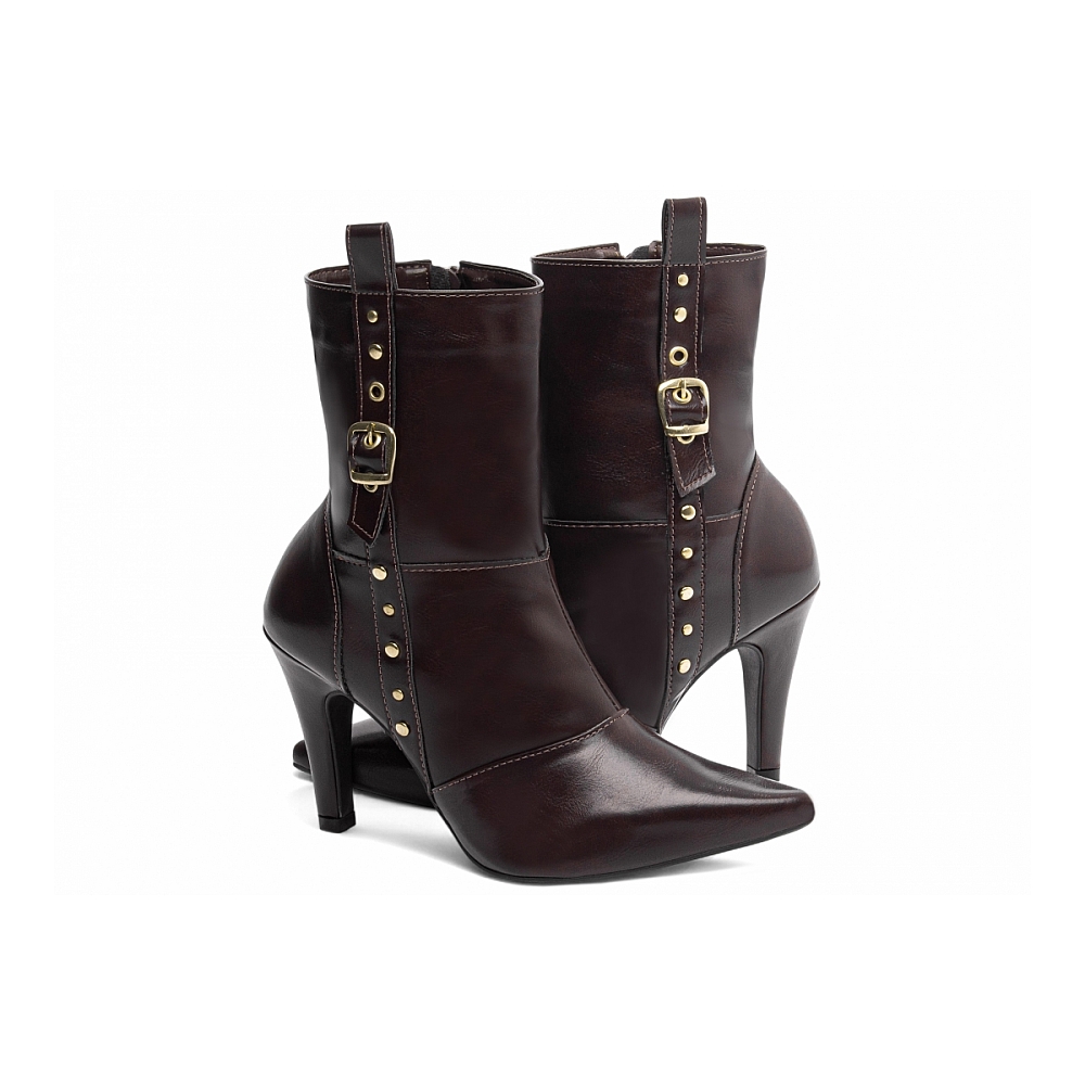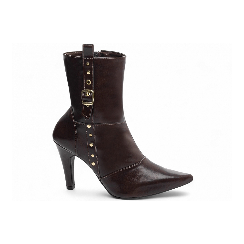 Bota Feminina Café Bico Fino Cano Curto