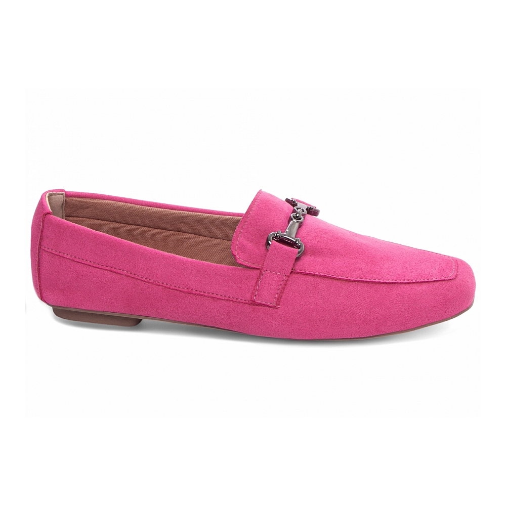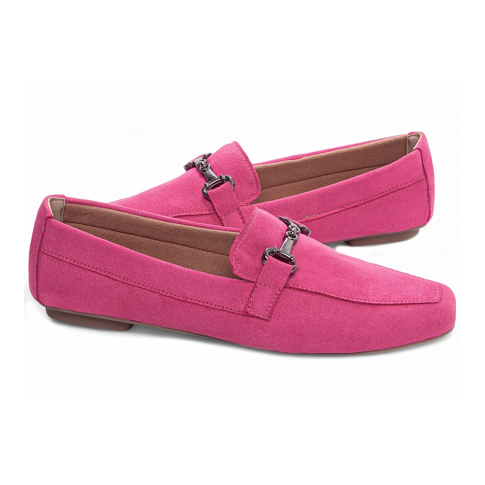 Mocassim Feminino Pink Bico Alongado Características: – Material: Camurça Pink – Enfeite: Bridão em ABS na cor Grafite – Palmilha: 4 mm de espessura, espuma em EVA, revestida em Napa Caramelo e taloneira Napa Bege – Forro: Cacharrel na cor Caramelo – Solado: PVC flexível com antiderrapante na cor Bege Dicas de Limpeza e Conservação: – Para limpar, utilize escova de cerdas macias ou pano seco indicado para camurça. Em caso de manchas, use produto específico para o material. – Mantenha o calçado em local seco e ventilado, longe da luz solar direta e da umidade. – Aplique spray impermeabilizante apropriado para camurça para proteger e prolongar a durabilidade do calçado.