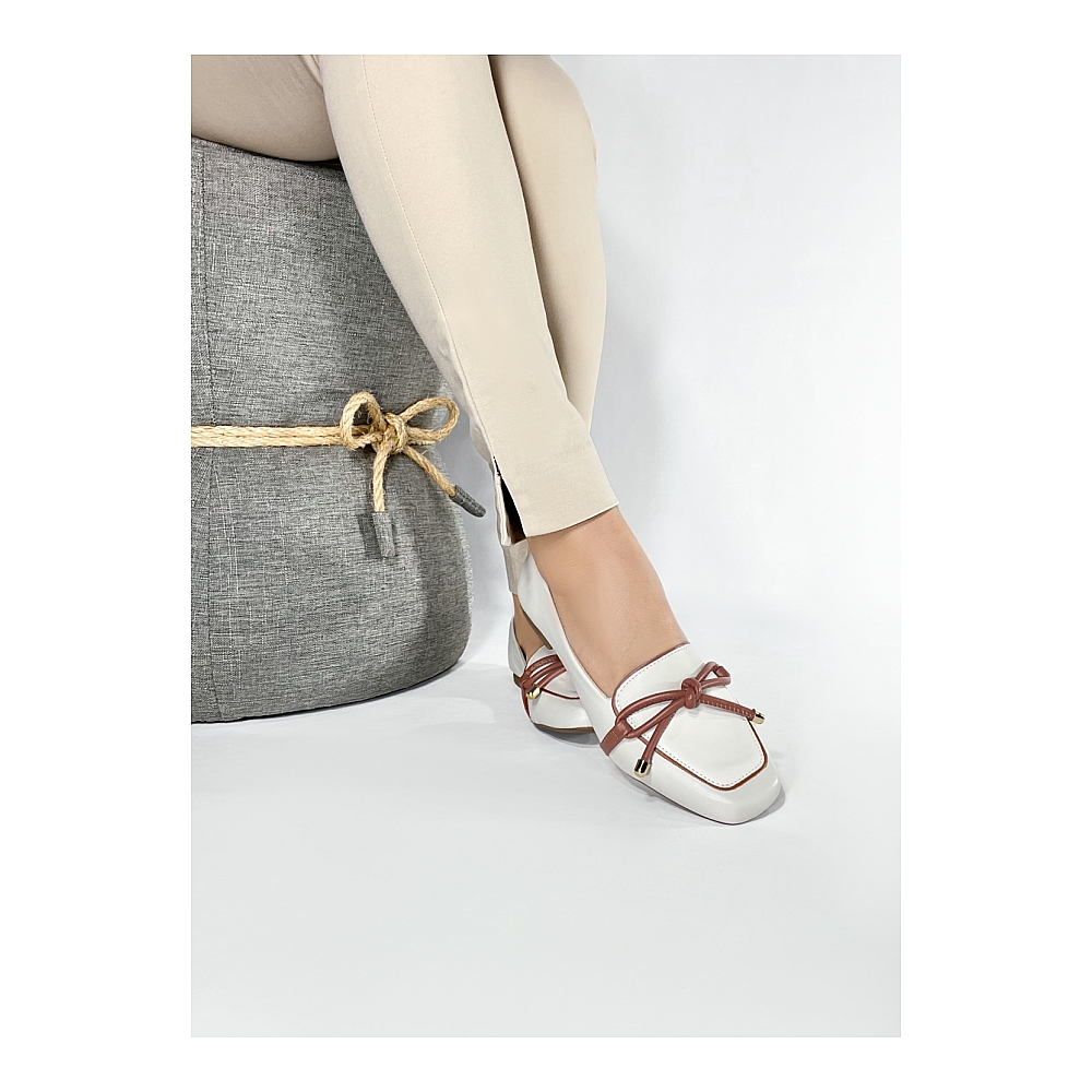 • Material: Napa Off White combinado com Napa Caramelo — acabamento elegante que transmite sofisticação e leveza.