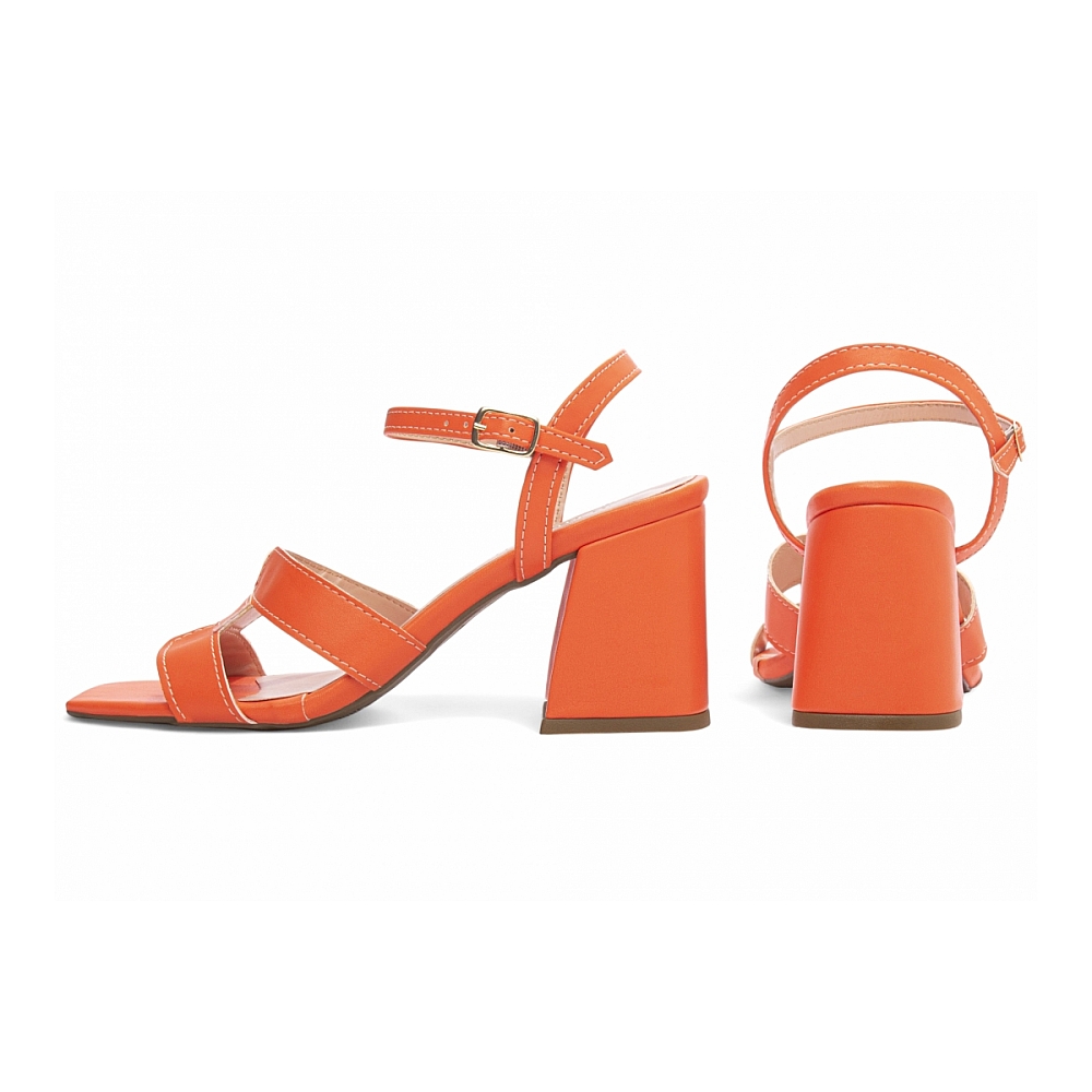 • Salto: Grosso com 7 cm de altura, revestido em Napa Laranja — imponência equilibrada com estética monocromática sofisticada.