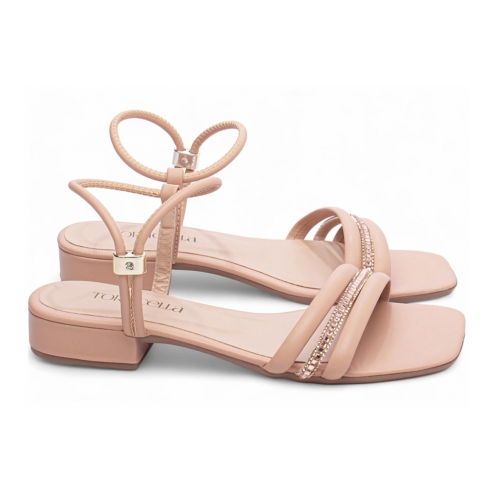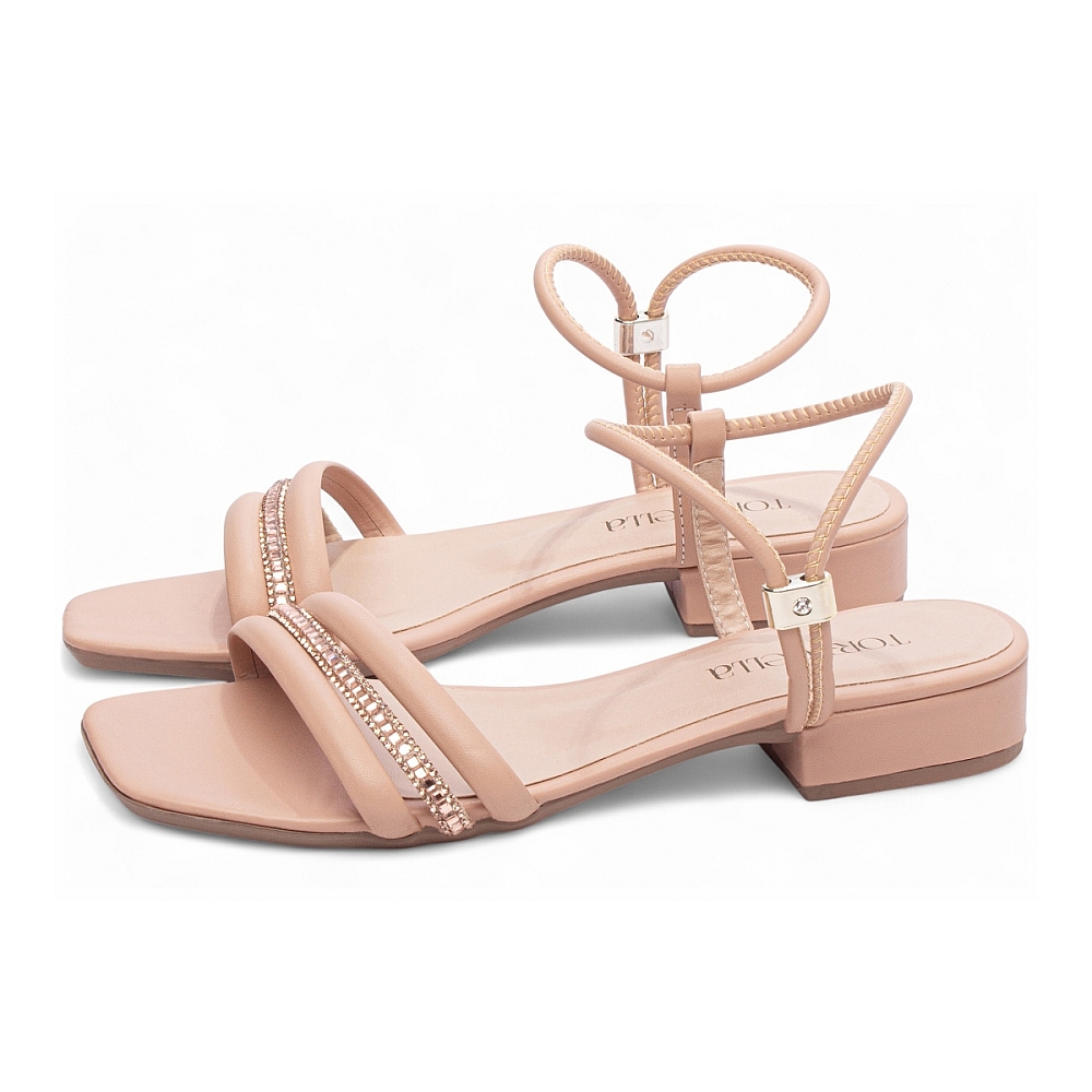 – Salto: Baixo com 2,5 cm de altura, revestido em Napa Rose.