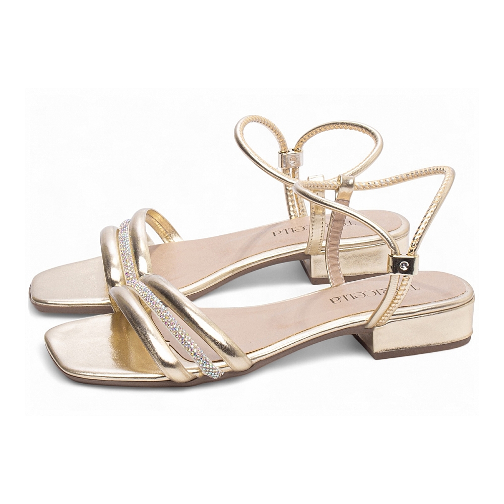 – Salto: Baixo com 2,5 cm de altura, revestido em Napa Ouro Light