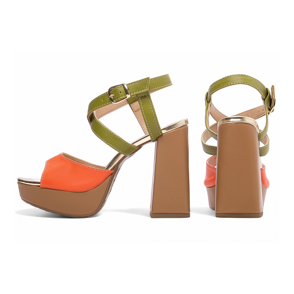 • Material: Napa Laranja combinado com Napa Verde — composição ousada que transmite modernidade e estilo contemporâneo.