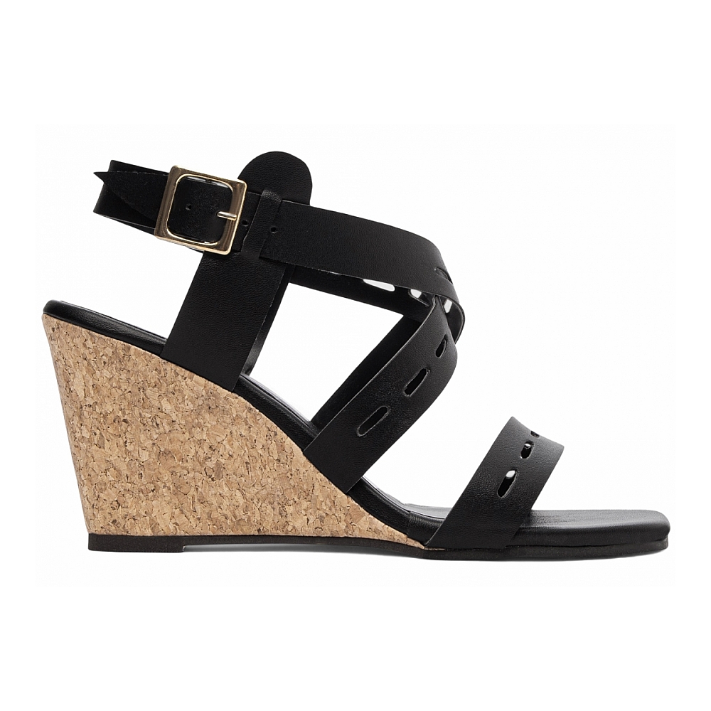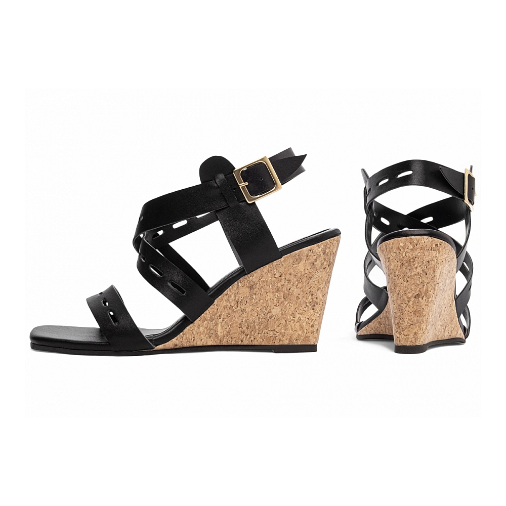 Sandália Preta Anabela Plataforma de Cunha 4066A