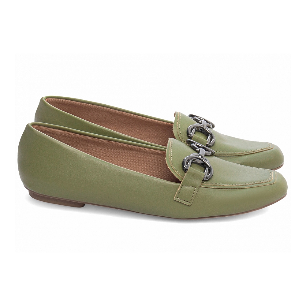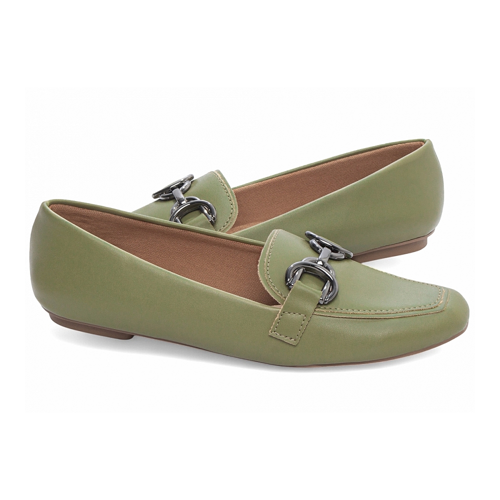 Sapatilha Mocassim Verde Feminino Características: – Material: Napa Verde – Enfeite: Bridão em ABS na cor Grafite – Palmilha: 4 mm de espessura, espuma em EVA, revestida em Napa Caramelo e taloneira Napa Bege – Forro: Cacharrel na cor Caramelo – Solado: PVC flexível com antiderrapante na cor Bege Dicas de Limpeza e Conservação: – Faça a limpeza com pano macio levemente umedecido e sabão neutro. Evite produtos abrasivos que possam danificar a napa. – Guarde em local seco, arejado e protegido da exposição solar direta. – Para manter o acabamento da napa, aplique hidratante próprio para couro sintético, conforme instruções do fabricante.