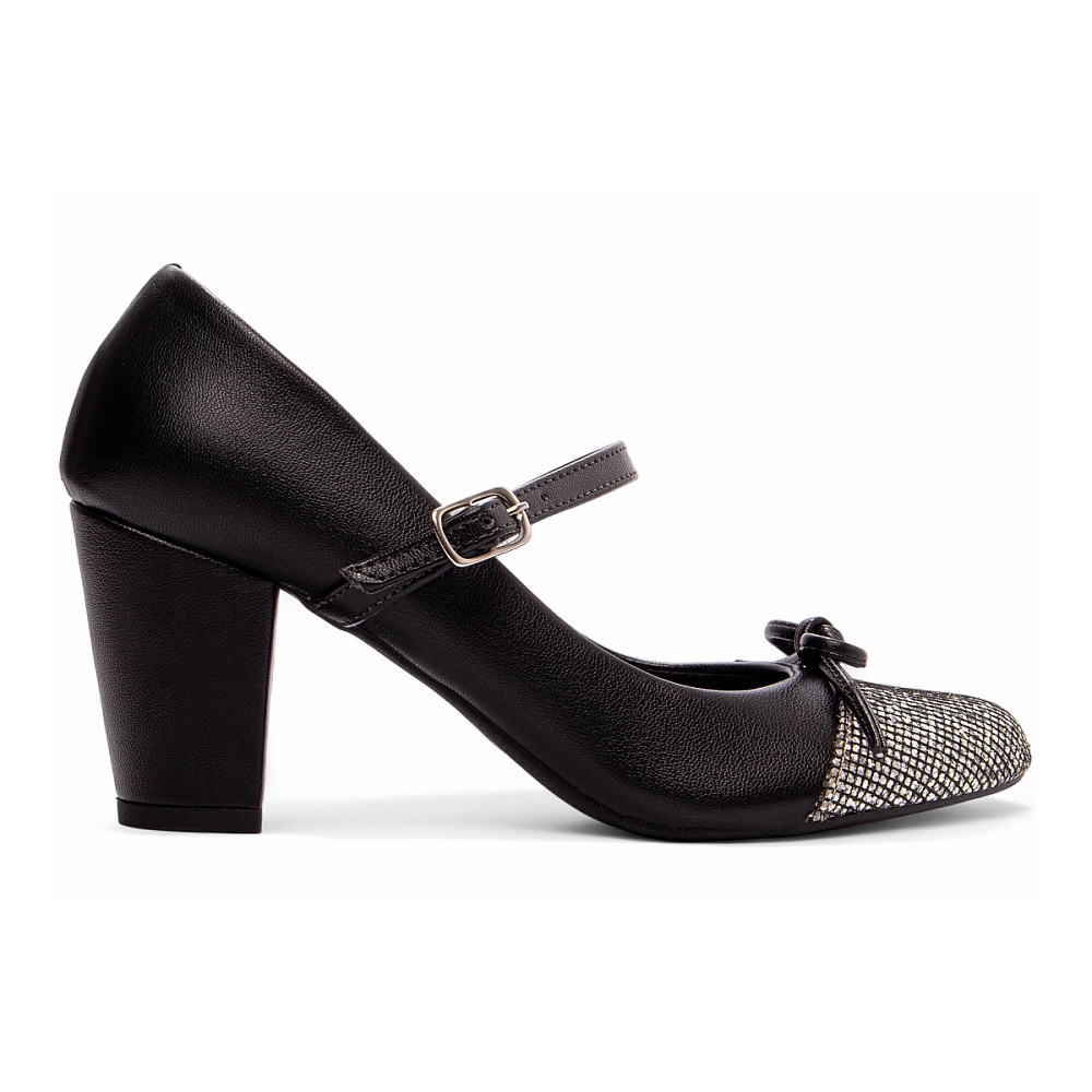 Sapato Boneca Mary Jane Preta Salto Médio 772A