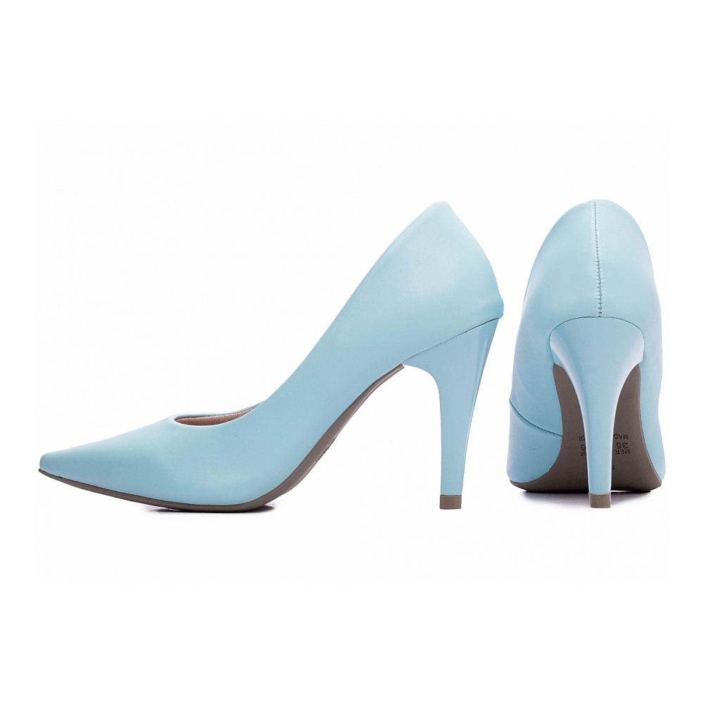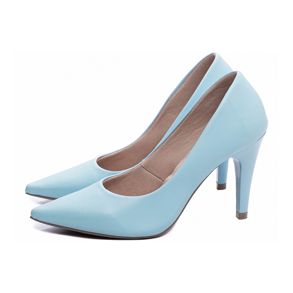 Sapato Scarpin Azul Bico Fino Salto Agulha Características: – Material: Napa Azul com acabamento liso e vibrante ? ideal para produções modernas com toque de personalidade – Palmilha: Espuma em EVA com 8 mm de espessura, revestida em Napa Azul e taloneira em Napa Bege ? conforto interno com contraste suave e elegante – Forro: Cacharrel na cor Bege ? material espumado que oferece maciez, respirabilidade e ajuste agradável ao pé – Salto: Fino tipo agulha com 10 cm de altura, pintado na mesma tonalidade Azul ? imponência e uniformidade cromática – Solado: PVC antiderrapante na cor Bege ? segurança e estabilidade com leveza ao caminhar Dicas de Limpeza e Conservação: – Limpe delicadamente com pano macio levemente umedecido em sabão neutro para preservar o acabamento da napa – Use flanela seca para manter a uniformidade do brilho e proteger o tom azul – Armazene em local seco e protegido da luz solar direta; saquinhos de tecido ajudam a manter a forma e o acabamento intactos