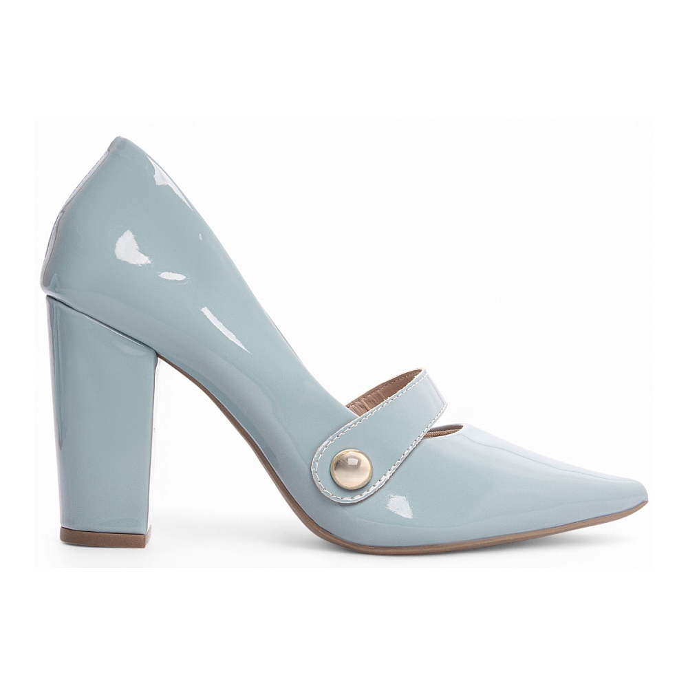 Sapato Scarpin Azul Salto Alto Características: – Material: Verniz Azul – Enfeite: Tira com aplique lateral na cor Dourado – Palmilha: 8 mm de espessura, espuma em EVA, com taloneira em Napa Bege – Forro: Cacharrel na cor Bege – Salto: 9 cm de altura, encapado em Verniz Azul – Solado: PVC antiderrapante na cor Bege Dicas de Limpeza e Conservação: – Limpe com pano macio levemente umedecido e sabão neutro. Evite produtos abrasivos, que podem comprometer o brilho do verniz. – Armazene em local seco e arejado, longe da luz solar direta e fontes de calor. – Para preservar a aparência do verniz, utilize um produto específico para limpeza de calçados envernizados, seguindo as orientações do fabricante.