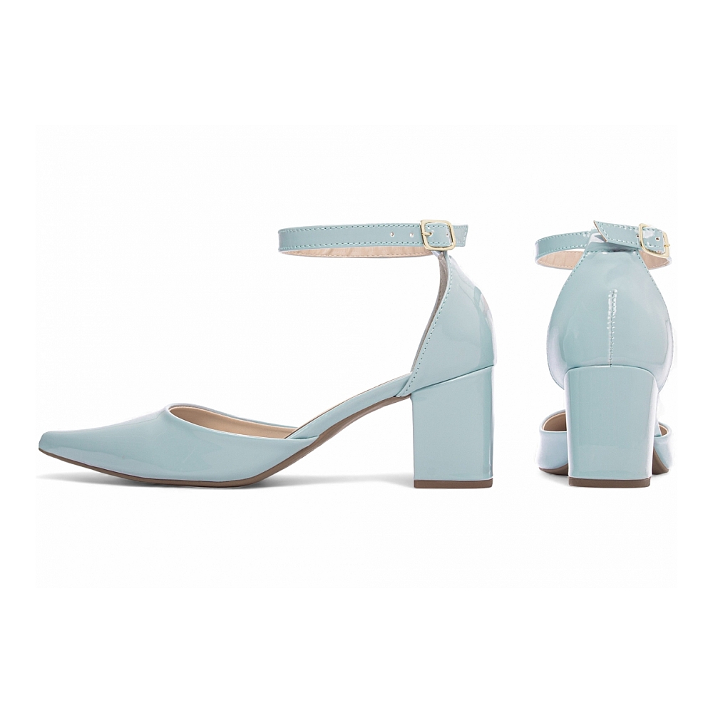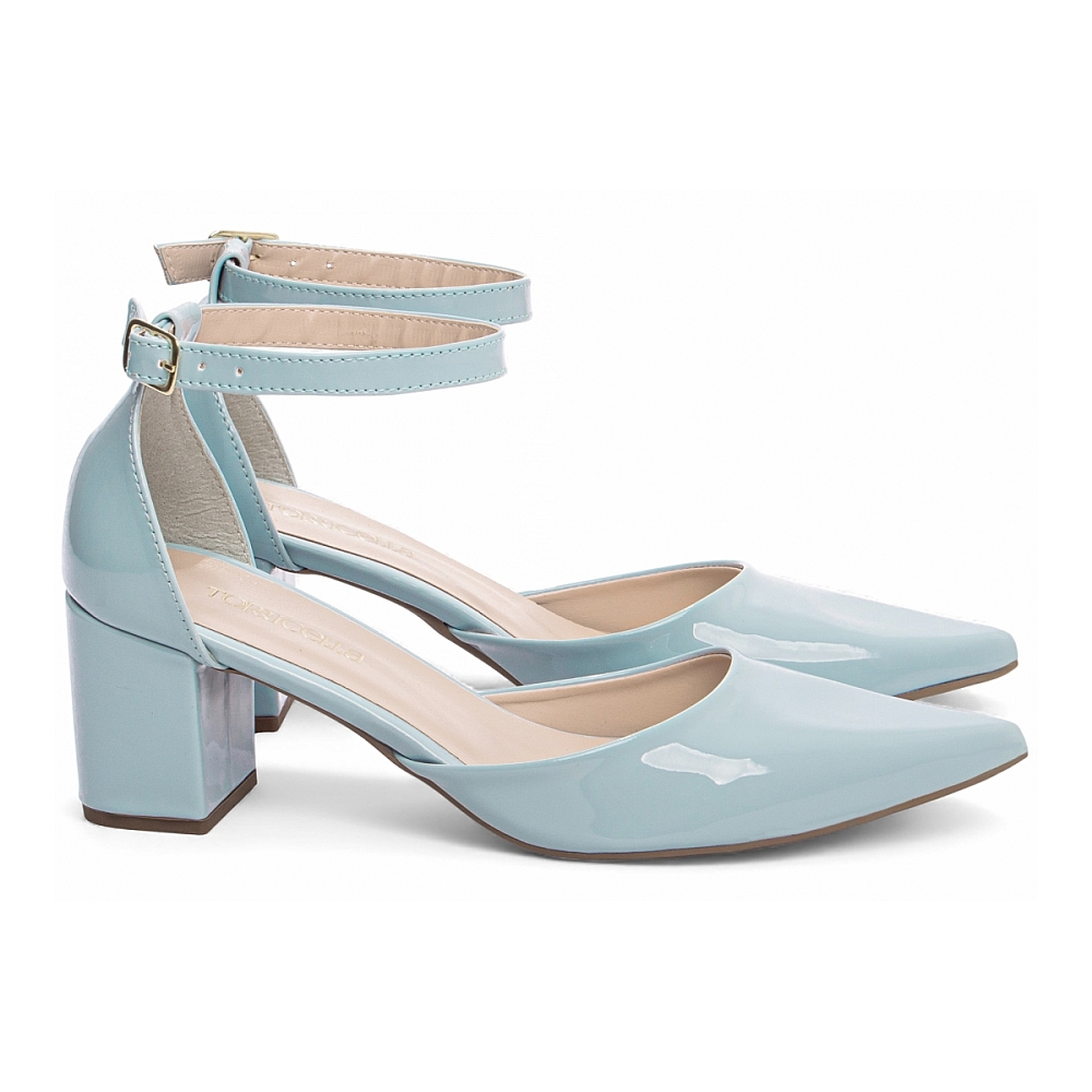 Sapato Feminino Verniz Azul Salto Médio