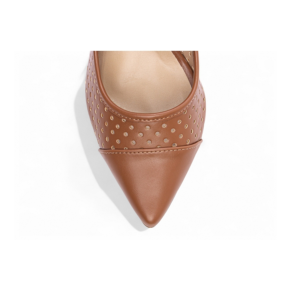 Scarpin Caramelo Salto Grosso Alto com Recorte Vazado Características: – Material: Napa Caramelo, tom quente, neutro e super versátil – Enfeite: Detalhe em material vazado que dá um toque moderno e sofisticado ao modelo – Palmilha: Espuma em EVA com 8 mm de espessura, revestida em Napa Caramelo com taloneira em Napa Bege, proporcionando conforto e elegância – Salto: Grosso com 9 cm de altura, revestido em Napa Caramelo, estabilidade e imponência na medida certa – Solado: PVC na cor Bege, com antiderrapante que garante segurança ao caminhar Dicas de Limpeza e Conservação: – Use pano macio levemente umedecido com sabão neutro para limpar, especialmente em áreas detalhadas do recorte – Guarde em local seco, ventilado e protegido da luz solar direta; saquinhos de tecido ajudam a conservar o acabamento e a forma – Aplique hidratante próprio para napa sintética e finalize com flanela seca para manter o brilho e a textura uniforme