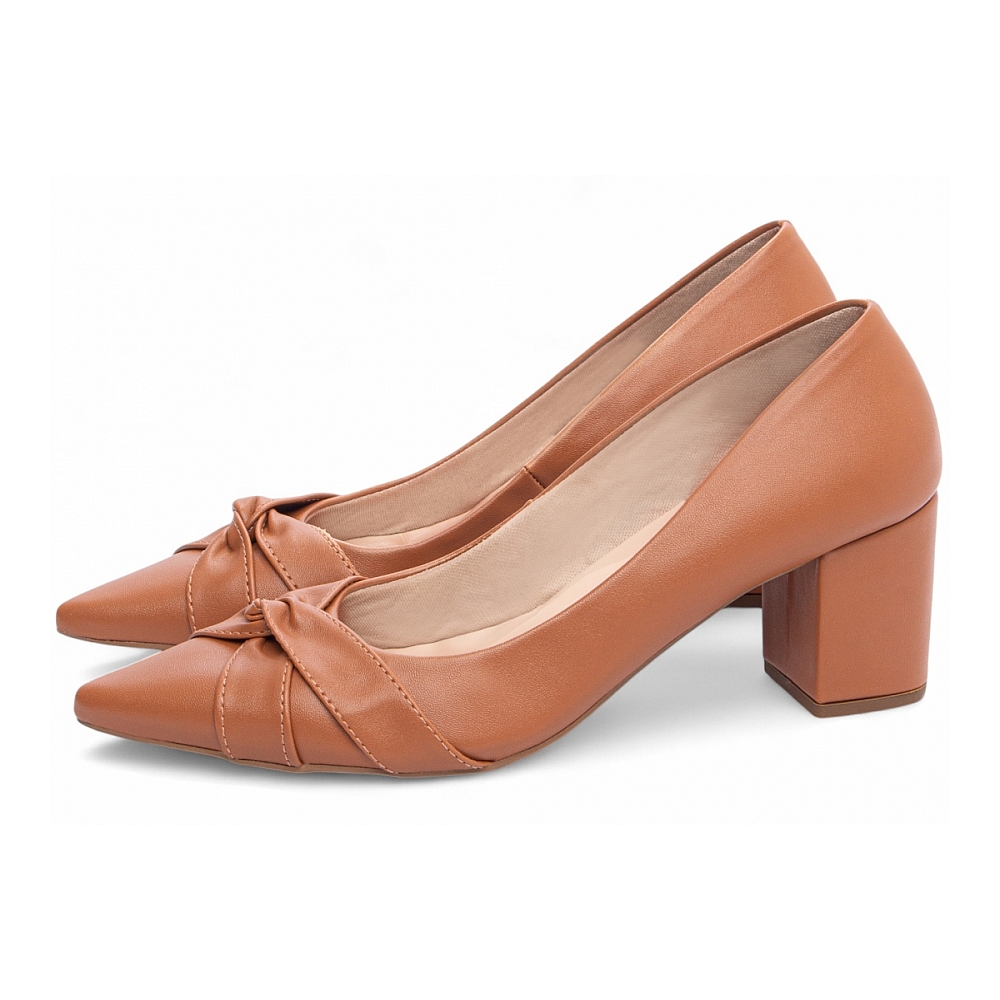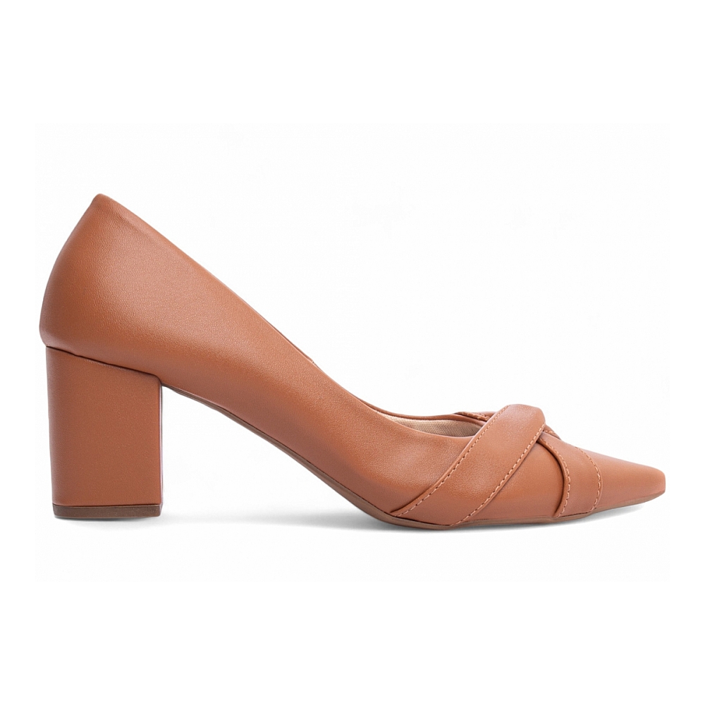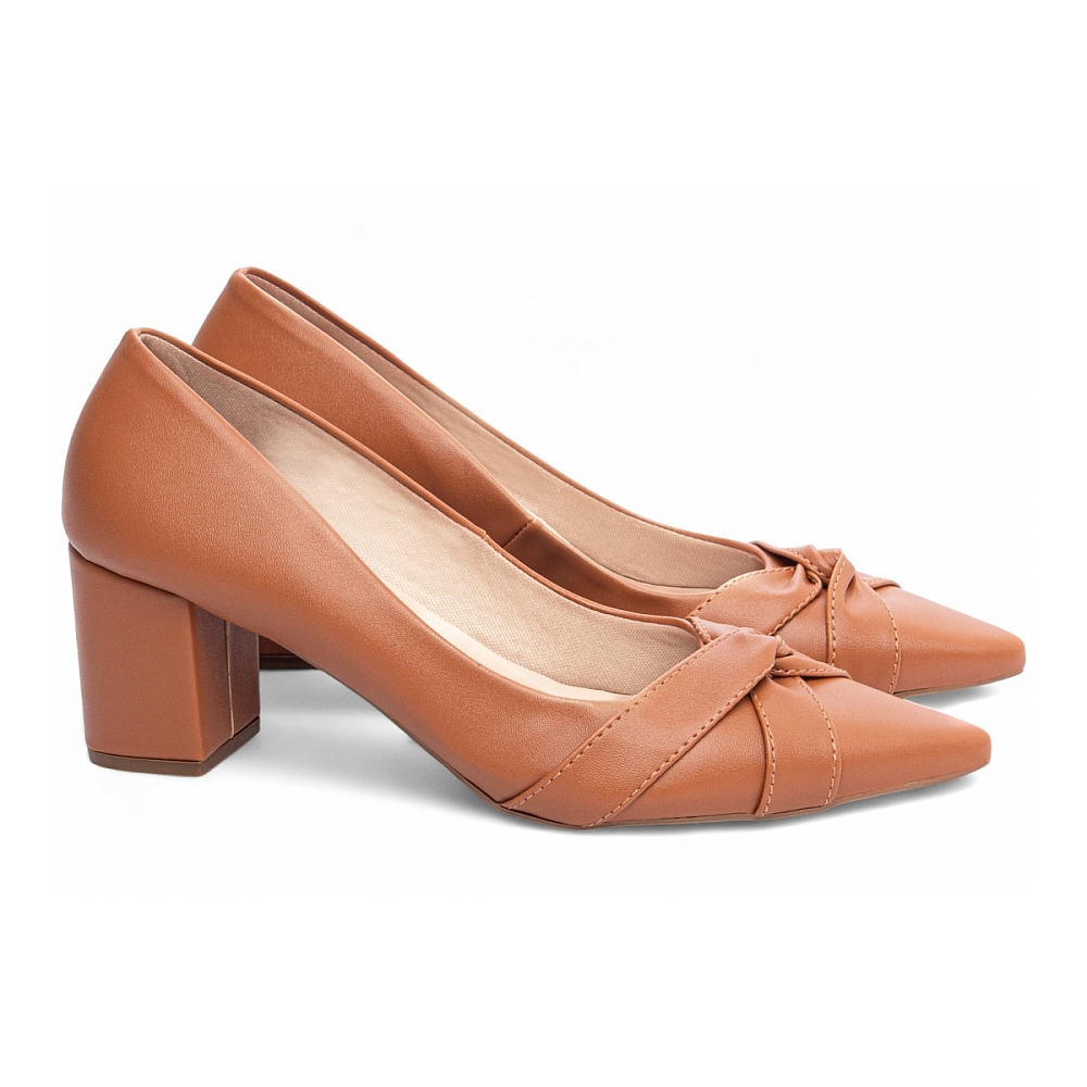 Scarpin Caramelo Salto Médio com Tiras em Nó Tonais