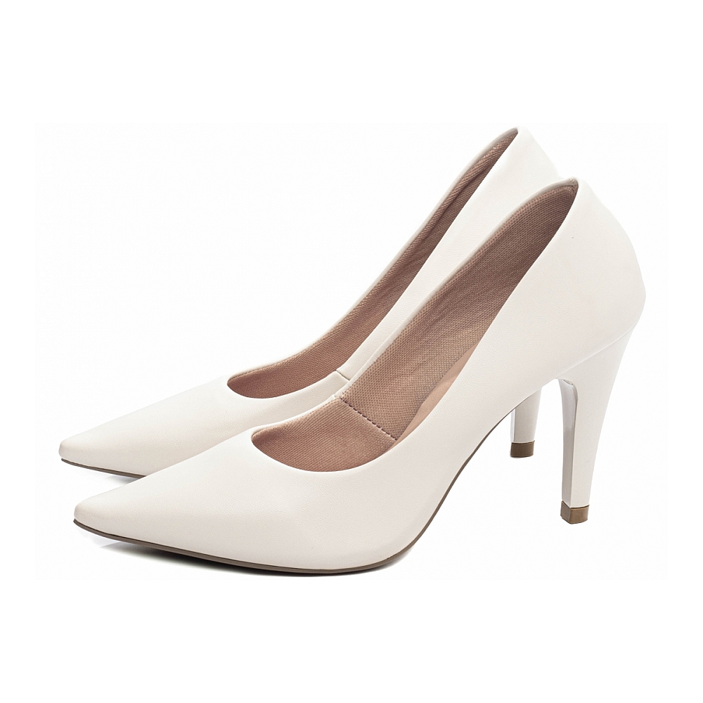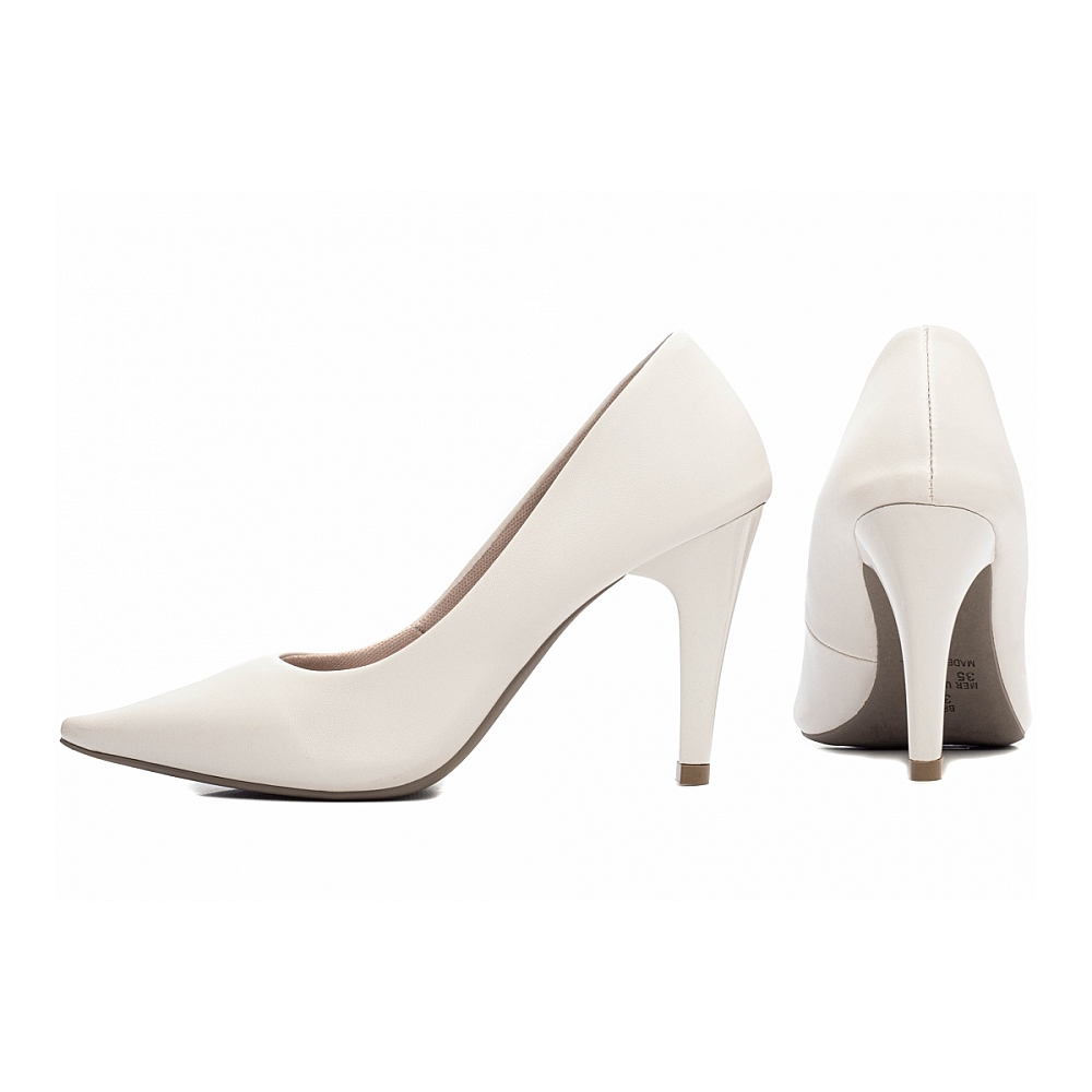 Sapato Scarpin Off White Bico Fino Salto Agulha 65-02B