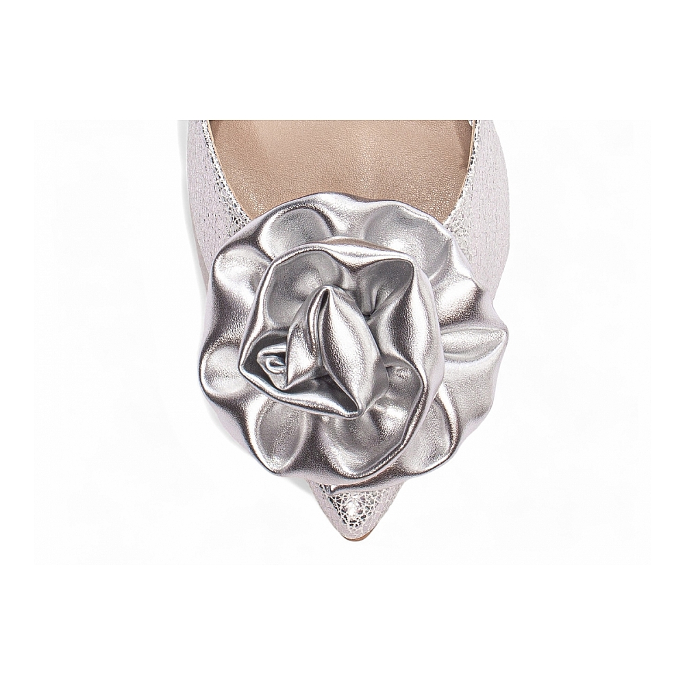 Scarpin Prata Salto 12 com Flor em Napa Craquelê