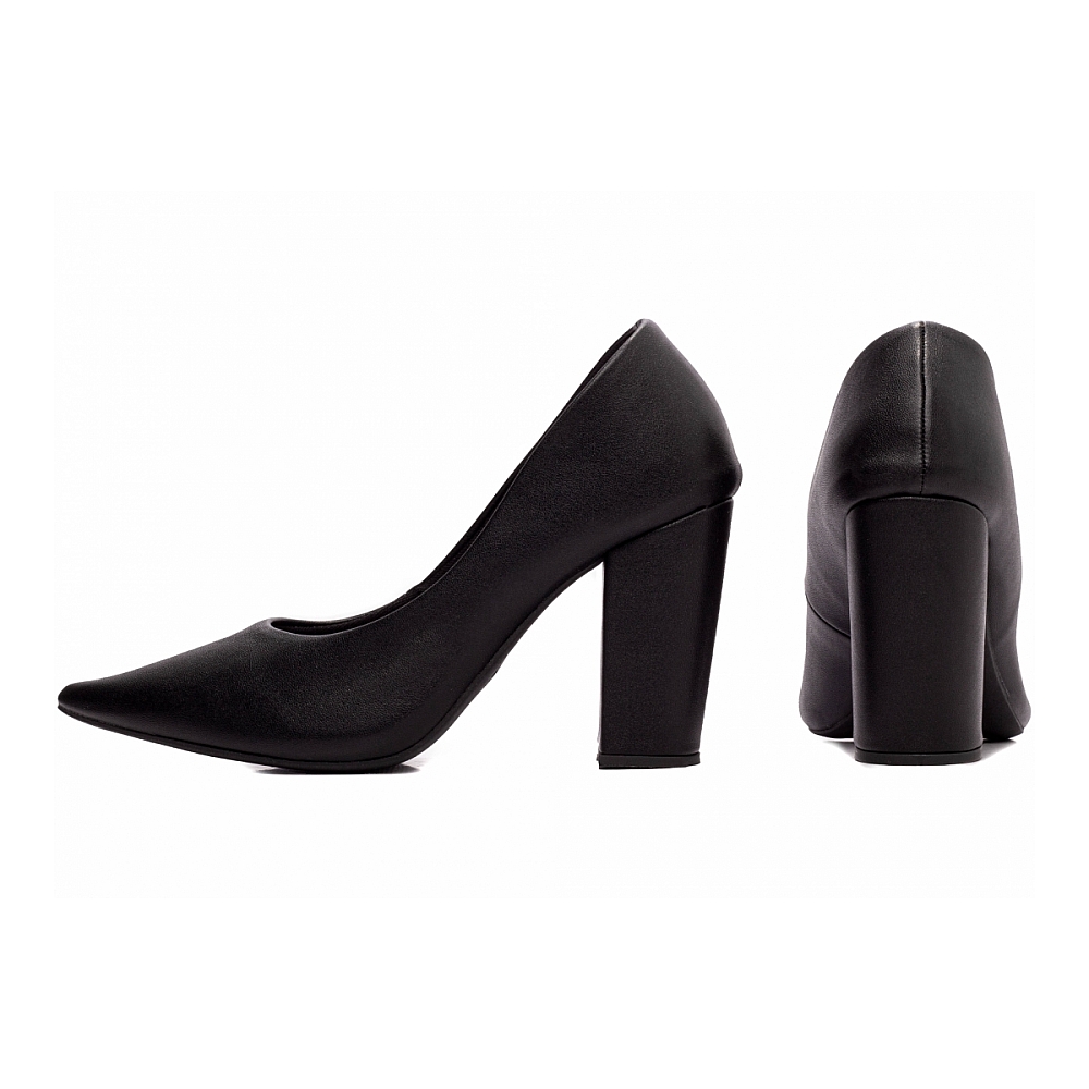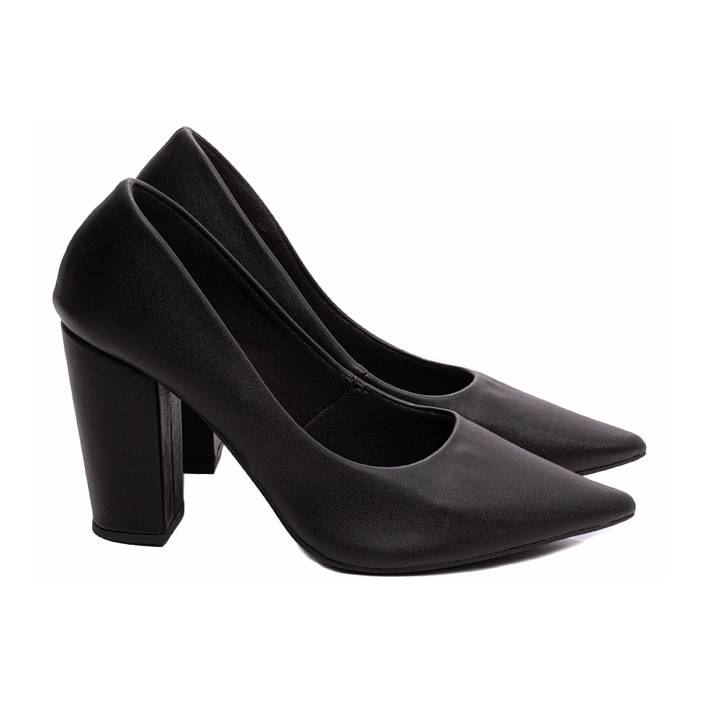 Sapato Scarpin Preto Salto Alto Grosso Características: – Material: Napa Preto com acabamento liso e elegante, ideal para composições sóbrias e sofisticadas – Palmilha: Espuma em EVA com 8 mm de espessura e taloneira em Napa Preto ? conforto prolongado com estética uniforme – Forro: Cacharrel Preto ? material espumado que proporciona toque macio, respirabilidade e ajuste confortável – Salto: Grosso com 9 cm de altura, totalmente encapado em Napa Preto ? firmeza com presença marcante – Solado: PVC antiderrapante na cor Preto ? segurança, aderência e durabilidade no dia a dia Dicas de Limpeza e Conservação: – Utilize pano macio levemente umedecido em sabão neutro para manter a napa limpa e bem cuidada – Finalize com flanela seca para preservar o brilho discreto e o acabamento da peça – Guarde em local seco e ventilado, protegido da luz solar direta; saquinhos de tecido ajudam a evitar riscos e deformações