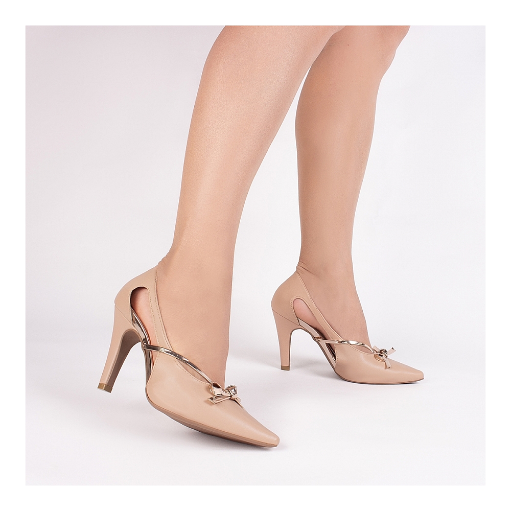 Scarpin Rosê Salto Alto com Laço Metalizado Características: – Material: Napa Rosê com detalhes em Metalizado Specchio Rosê – Enfeite: Laço decorativo em Metalizado Specchio Rosê – Palmilha: 8 mm de espessura, com espuma em EVA, revestida em Metalizado Specchio Rosê e taloneira em Napa Bege – Salto: Fino com 9 cm de altura, revestido em Napa Rosê – Solado: PVC com antiderrapante na cor Bege Dicas de Limpeza e Conservação: – Limpe com pano macio levemente umedecido em sabão neutro, evitando fricção direta sobre o material metalizado para não comprometer o brilho. – Armazene o scarpin em local seco, arejado e sem incidência direta de sol ? saquinhos de tecido são ideais para preservar a napa e o Specchio. – Use hidratante apropriado para napa sintética nas áreas lisas e flanela seca nas partes metalizadas para manter o brilho delicado e uniforme.